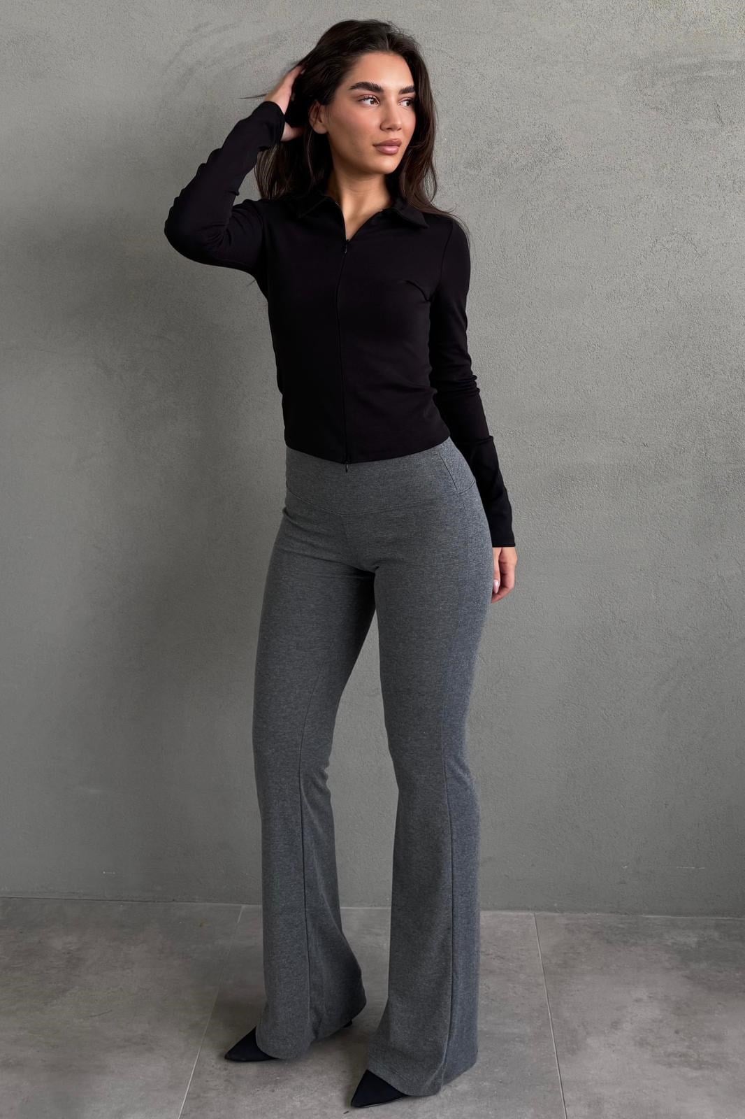 Antrasit Yüksek Bel Flare Paça Spor Kadın Tayt MG2789