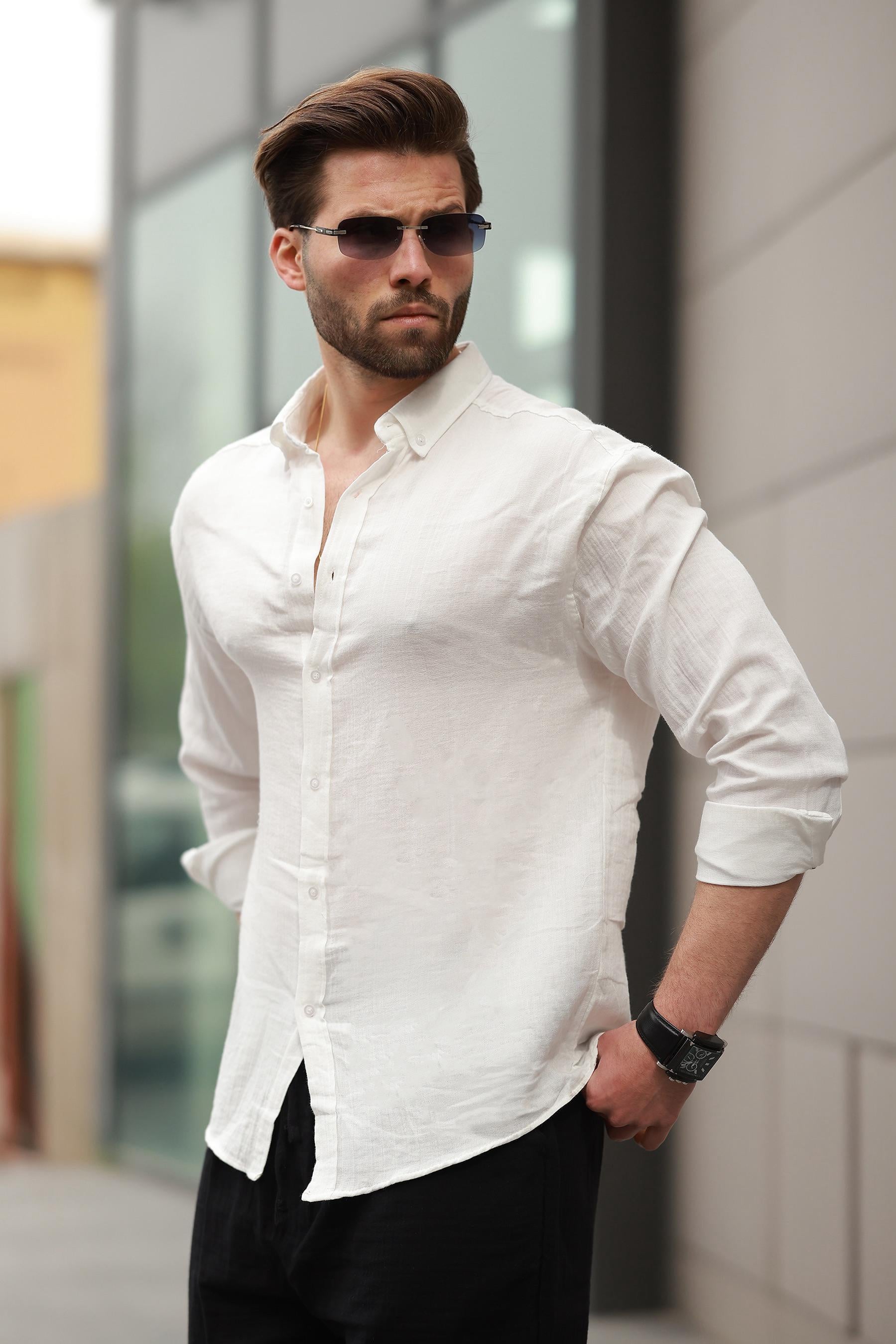 Beyaz Basic %100 Pamuklu Uzun Kollu Erkek Gömlek E6761