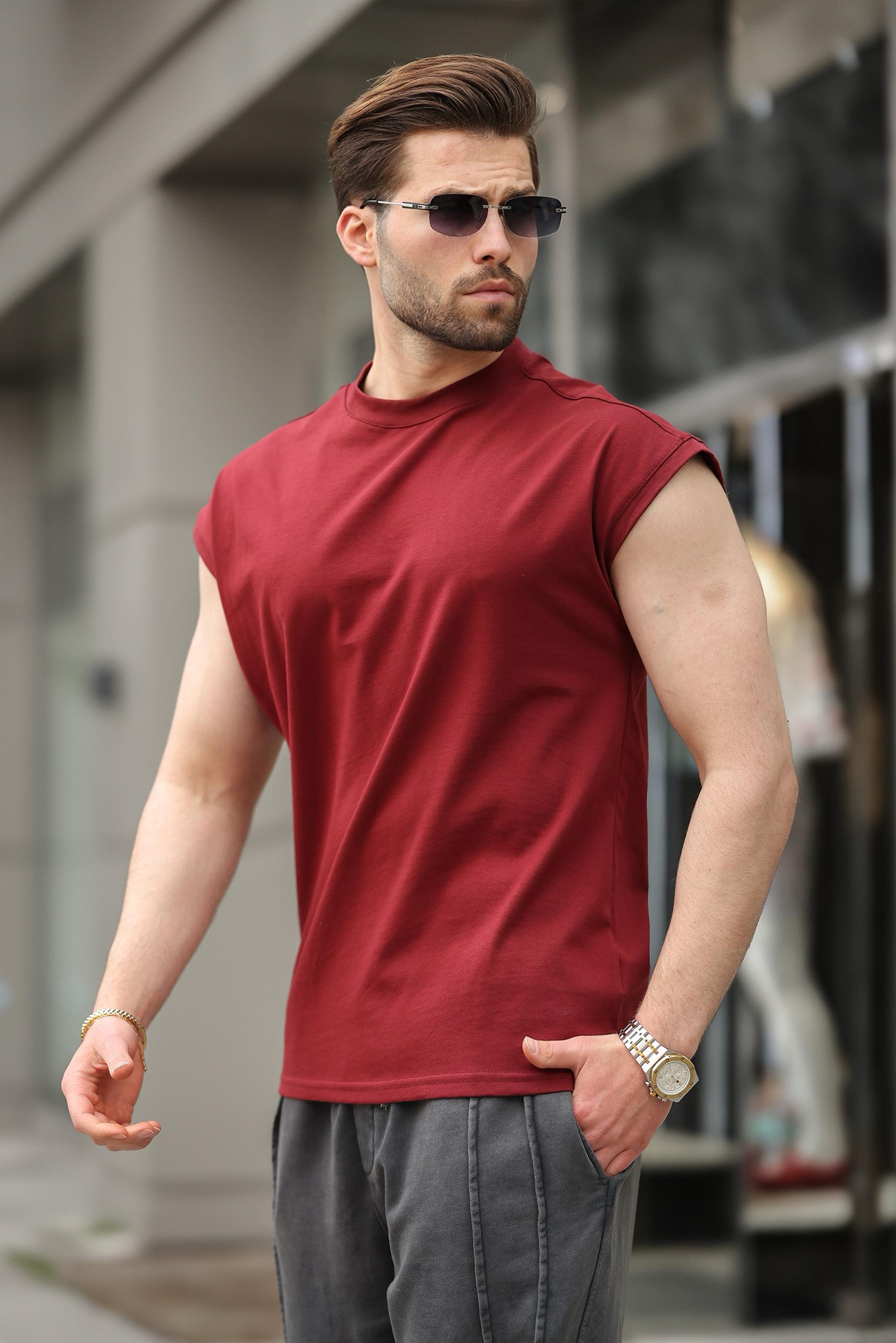 Bordo Yarım Kol Erkek Basic Tişört E7136