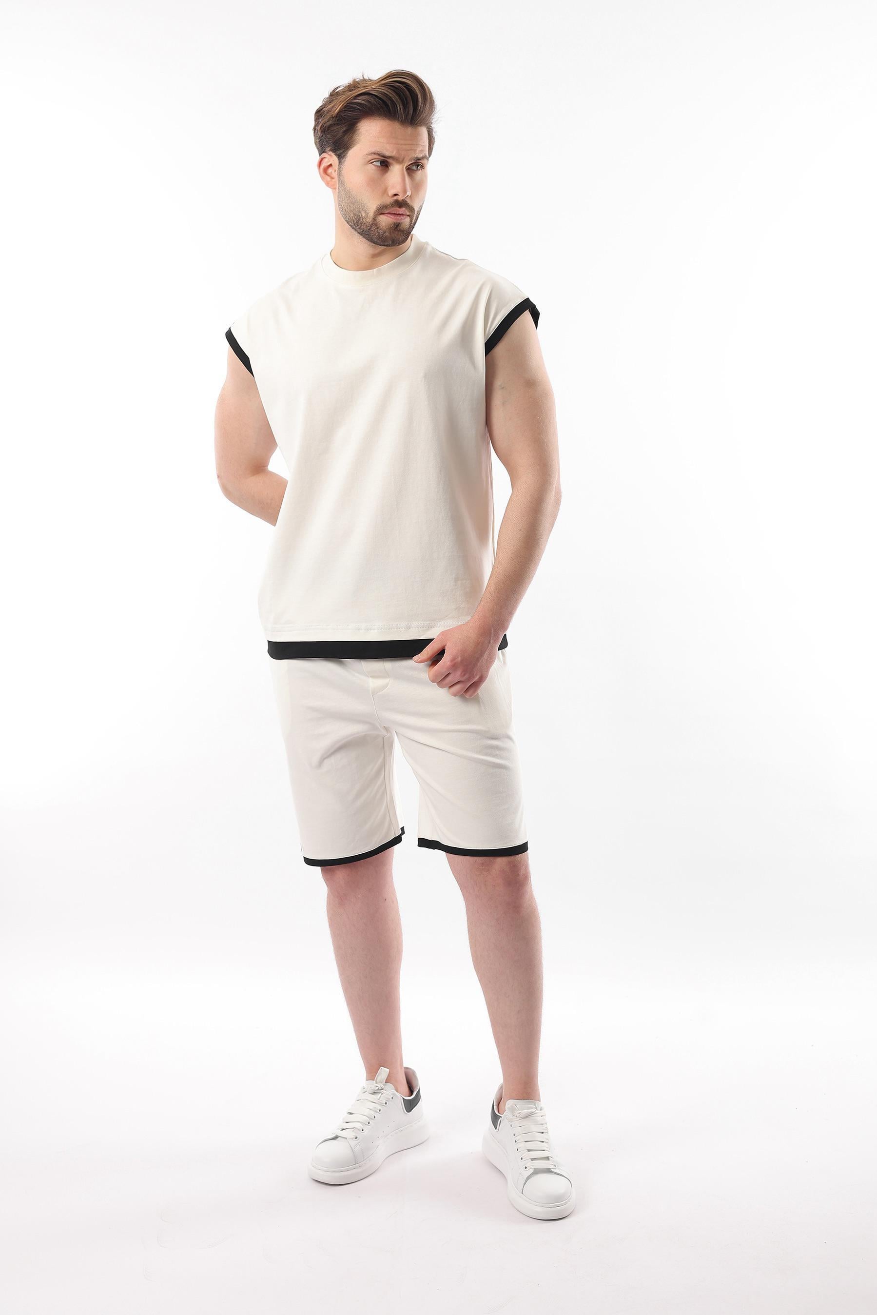 Ekru Sıfır Kol Erkek Şort T-shirt Takım E7308