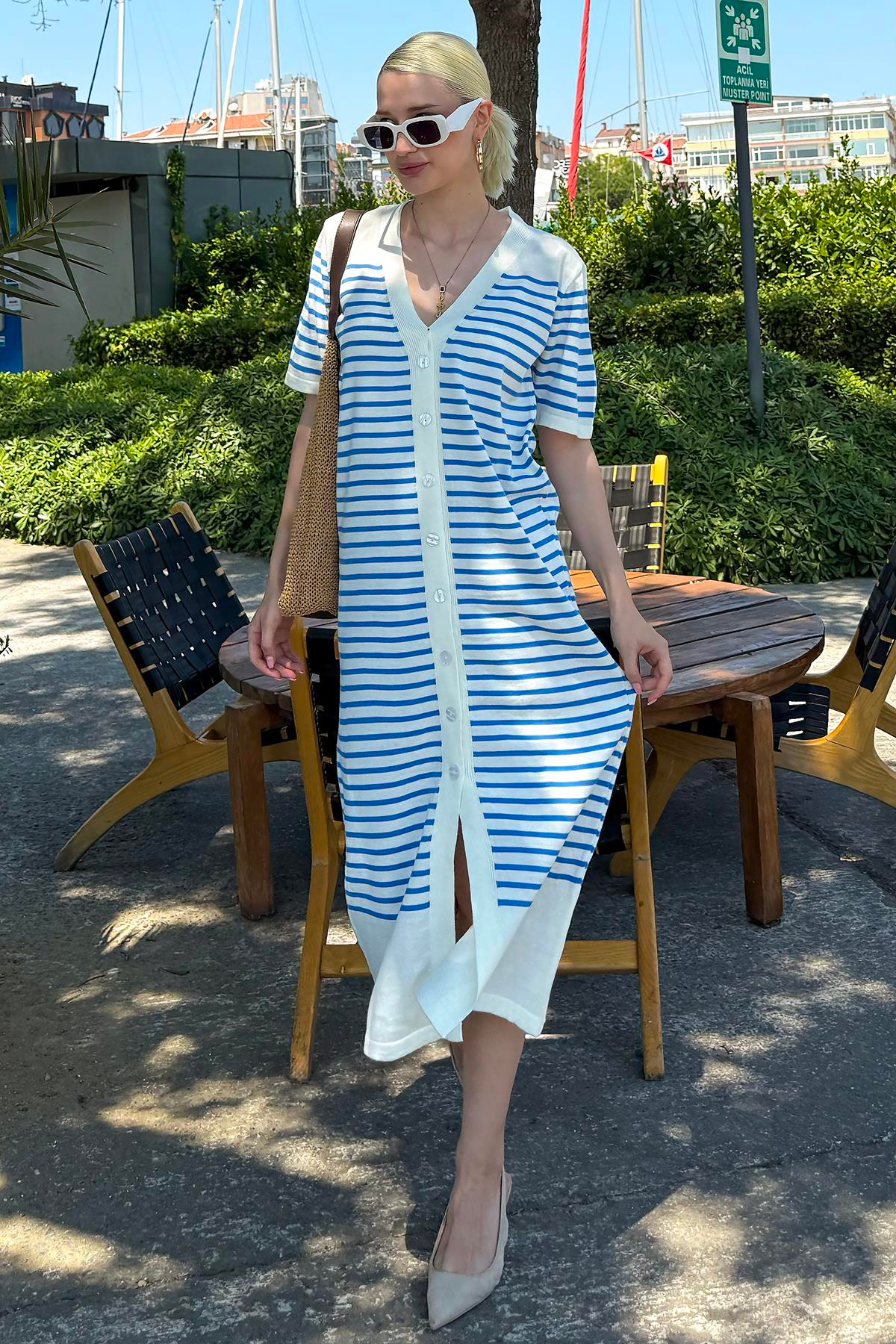 Beyaz Düğmeli Triko Kadın Elbise MG1648