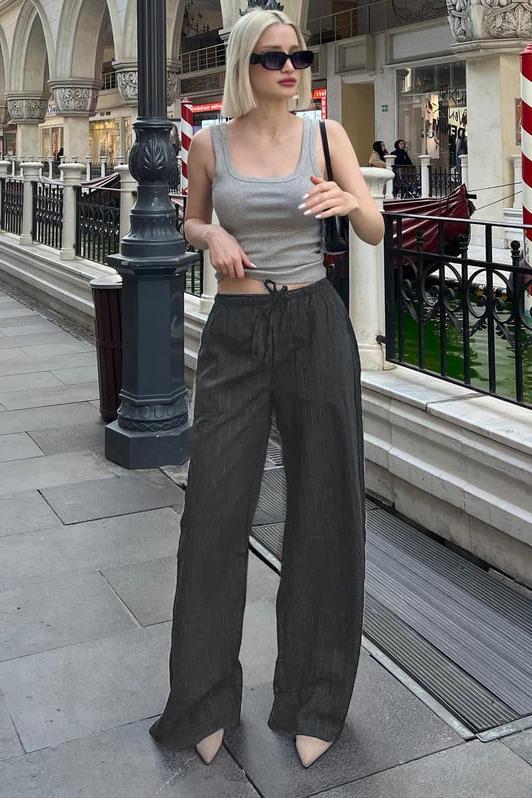 Füme Cepli Bol Paça Kadın Pantolon MG1882