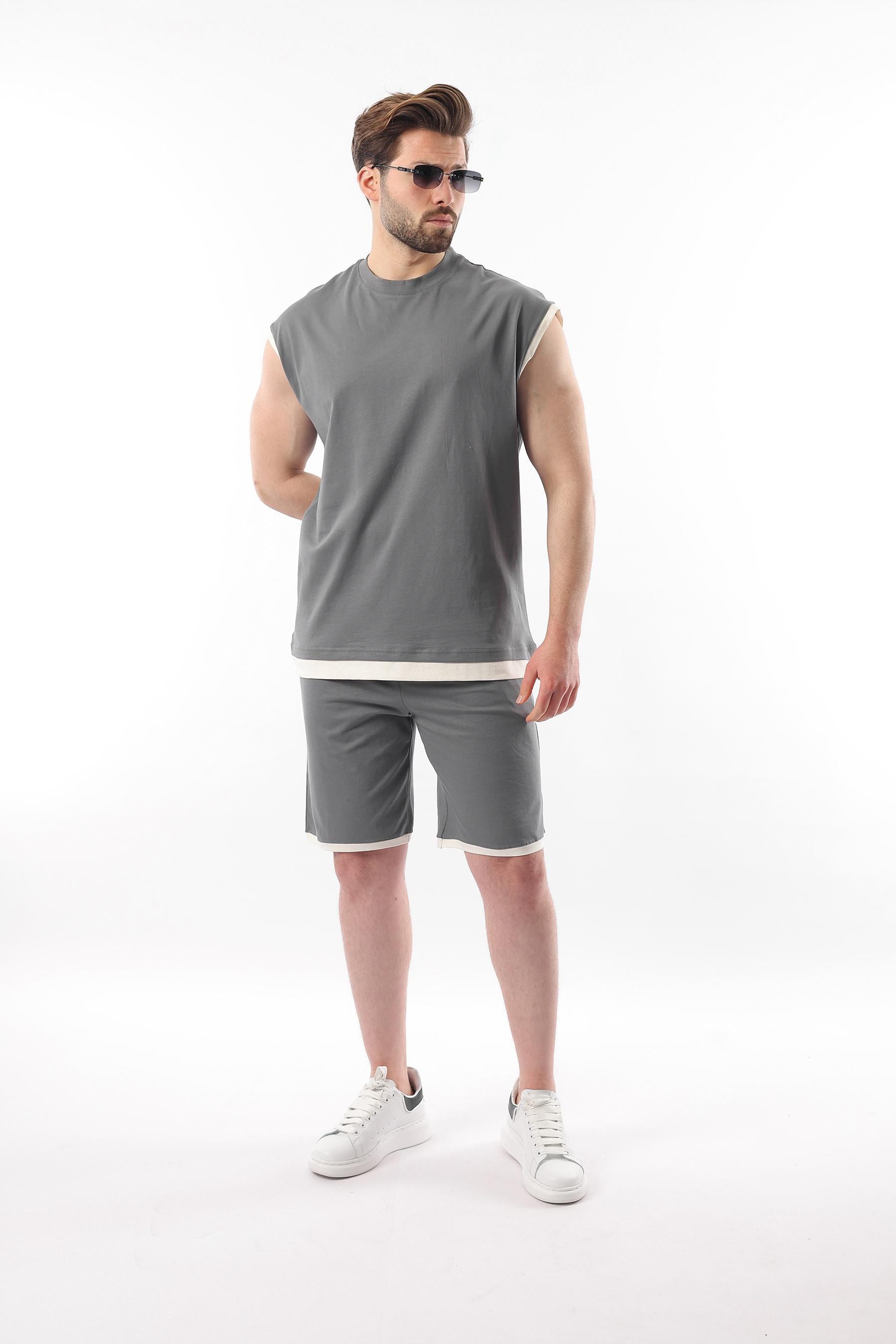 Füme Sıfır Kol Erkek Şort T-shirt Takım E7308