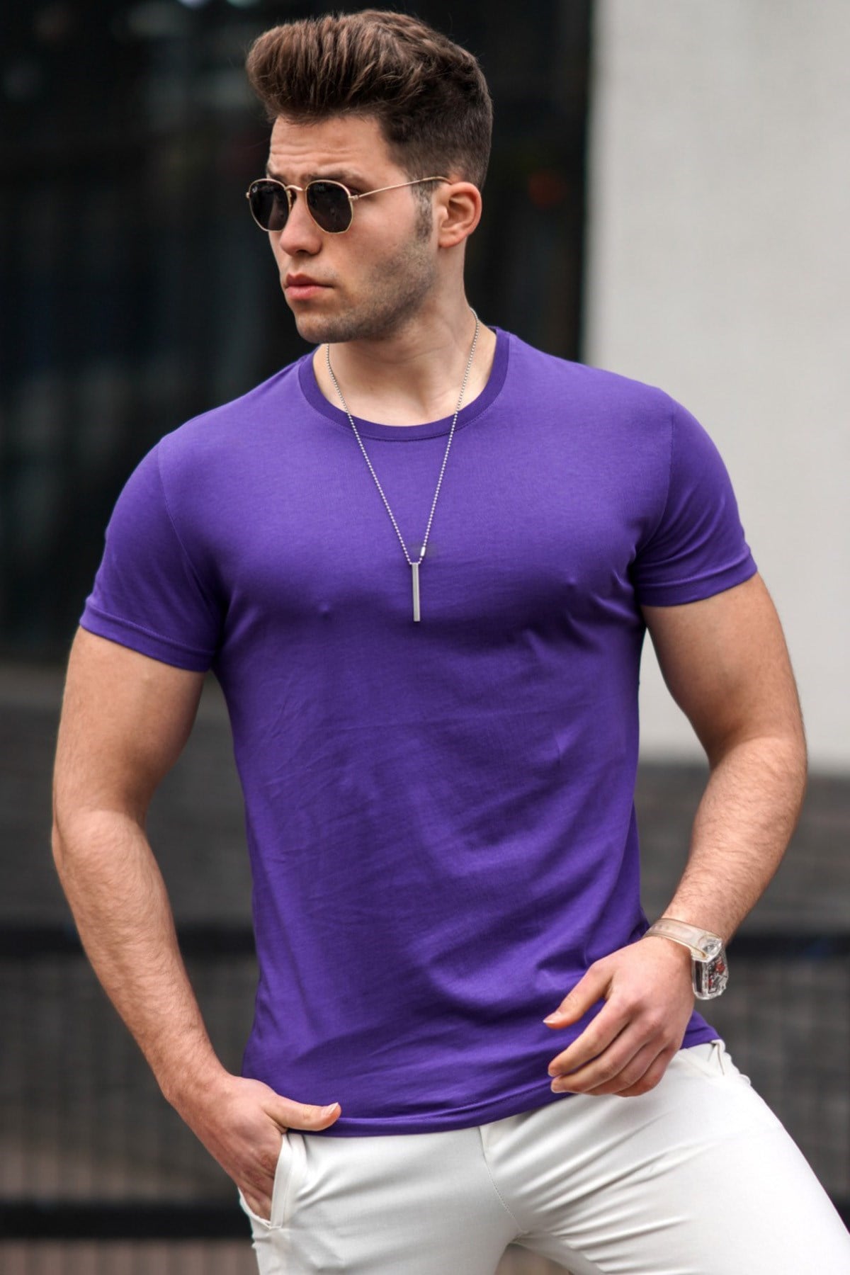 Madmext Bisiklet Yaka Basic Tişört Mor 3006
