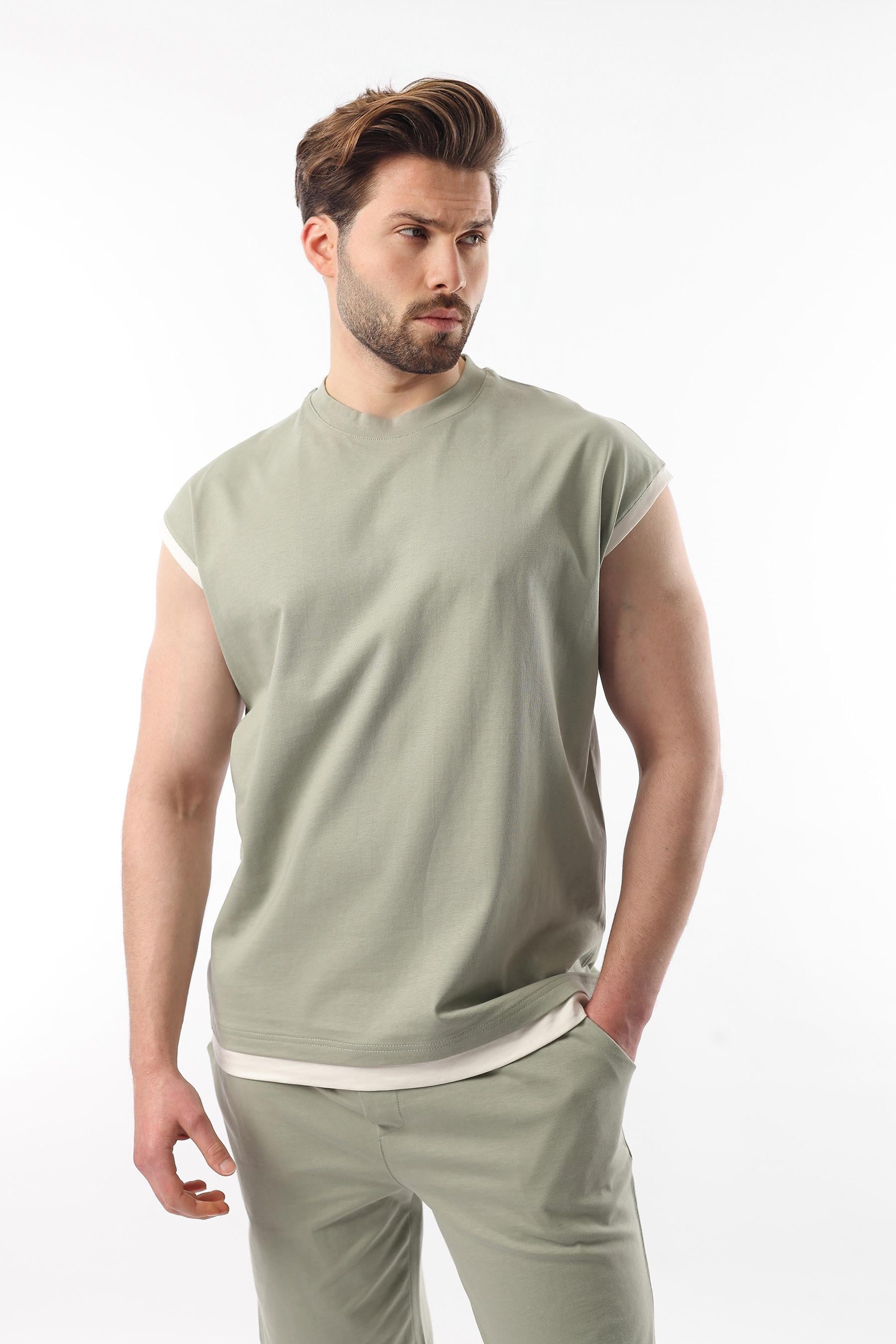 Mint Yeşili Sıfır Kol Erkek Şort T-shirt Takım E7308