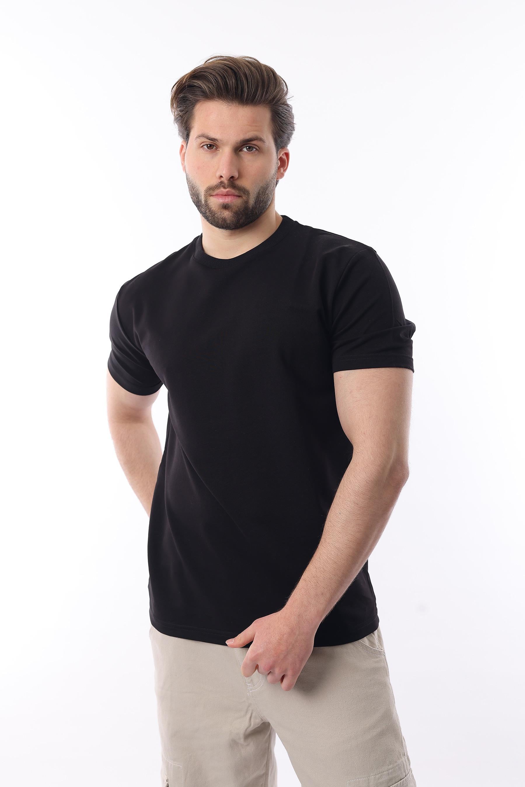 Siyah Bisiklet Yaka Basic Kısa Kollu Tişört 7042