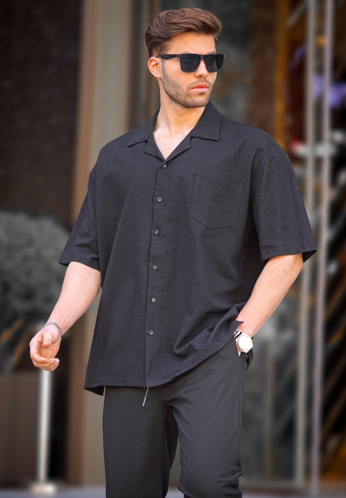 Siyah Kısa Kollu Oversize Erkek Gömlek 6737